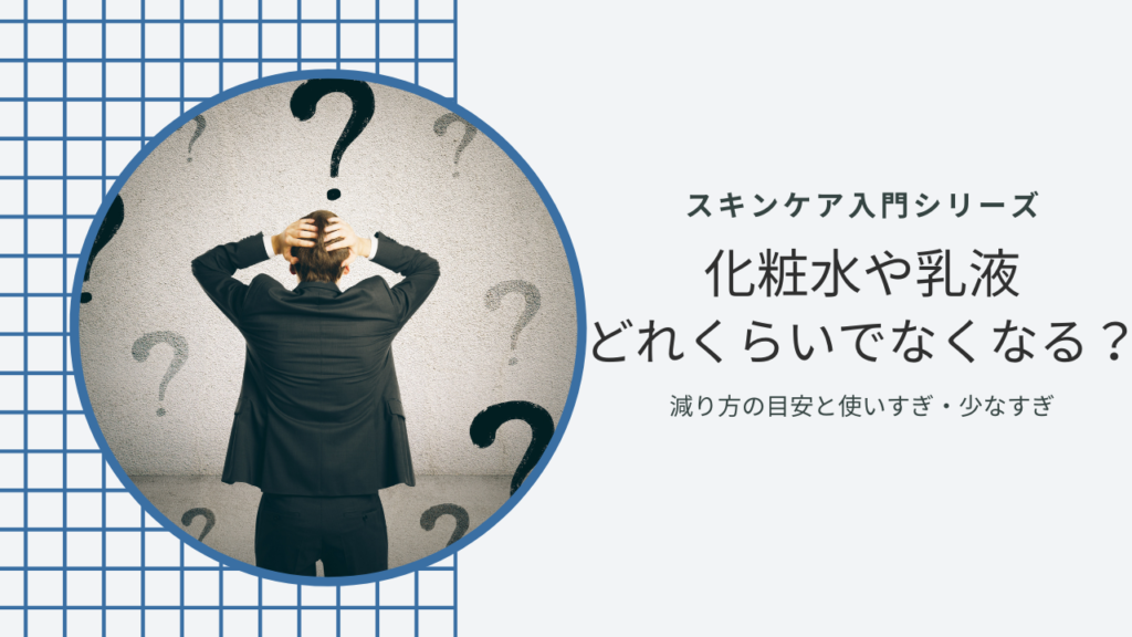 スキンケアを始めると、意外と気になるのがこんなことです。 化粧水ってこんなに早く減るもの? 乳液が全然減らないけど、量が少なすぎる? 使いすぎなのか、足りていないのかよくわからない 男性は特に、スキンケアに慣れていないと「適量」がつかみにく... -